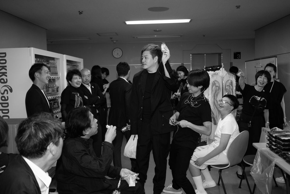 Laughter fills the air as Shibuya makes jokes a few moments before the show