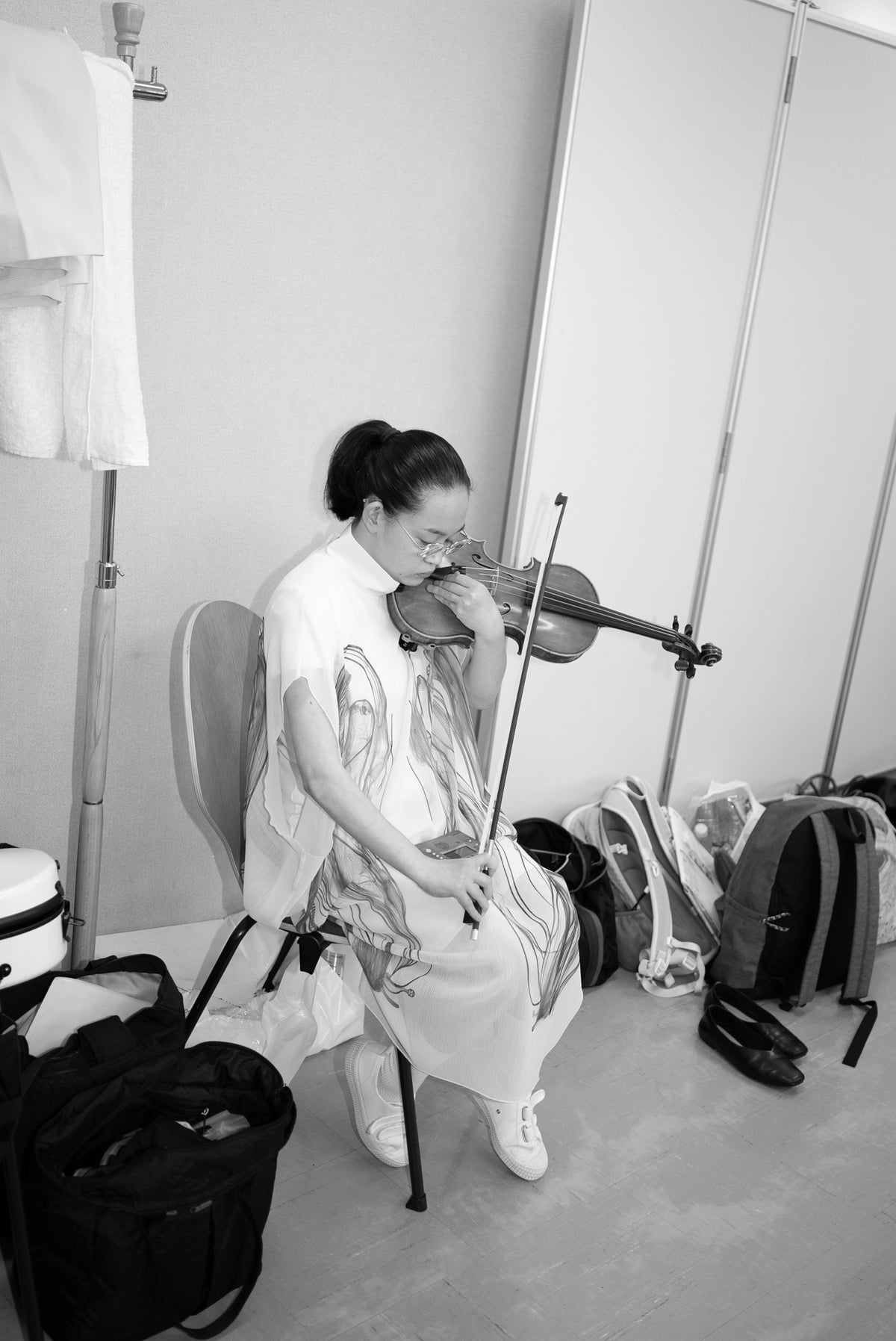 Concertmaster Narita Tatsuki returns backstage after all performances