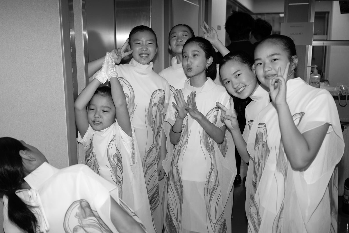 Child performers from White Hand Chorus NIPPON happily pose to be photographed