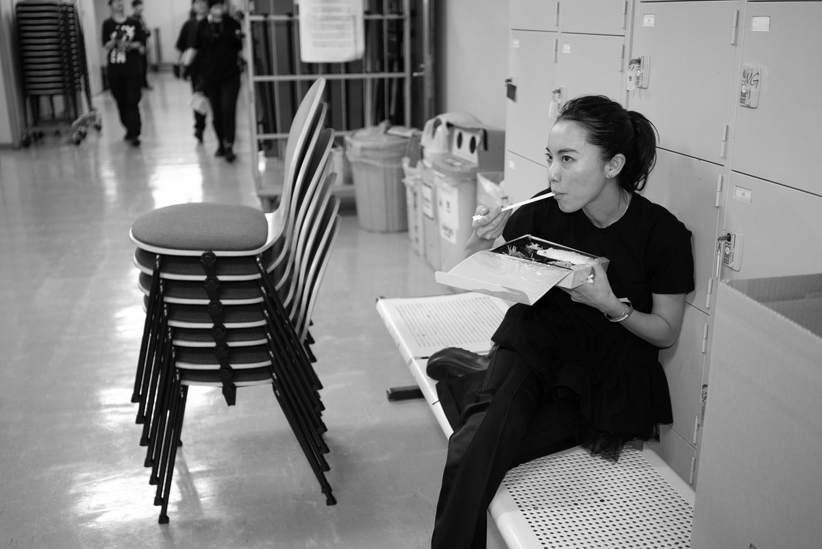 Executive Producer Natsumi finally finds a moment to eat a bento