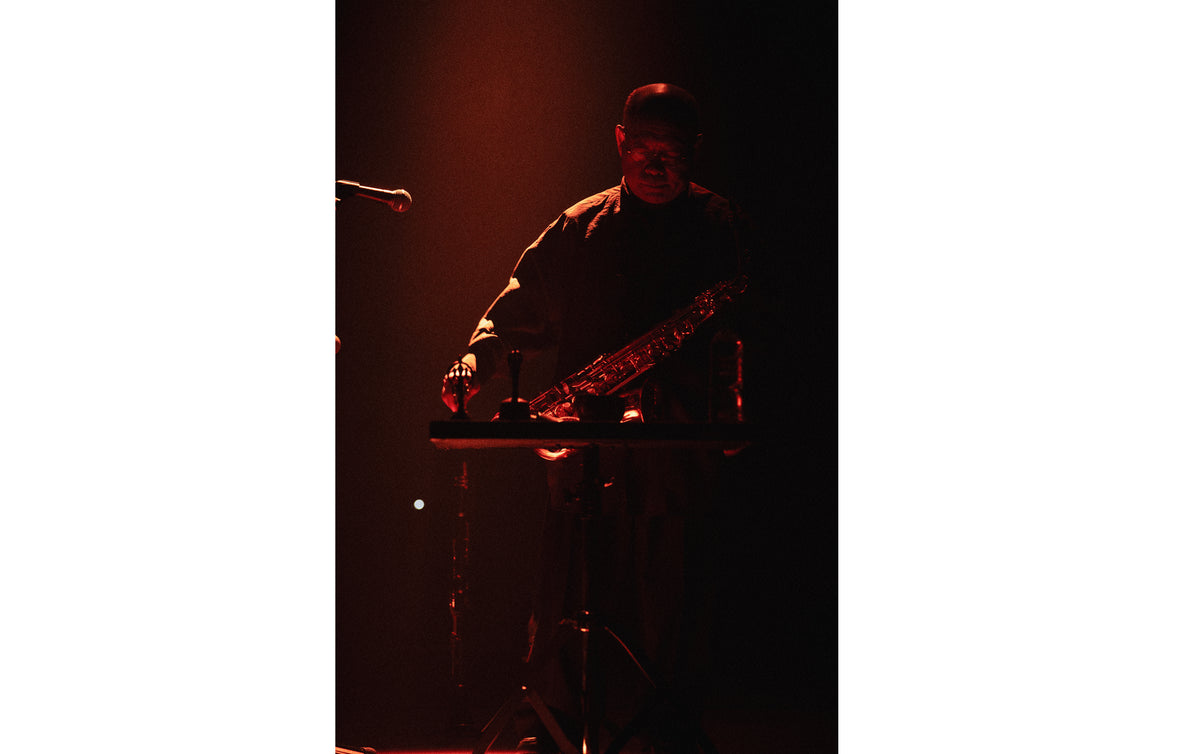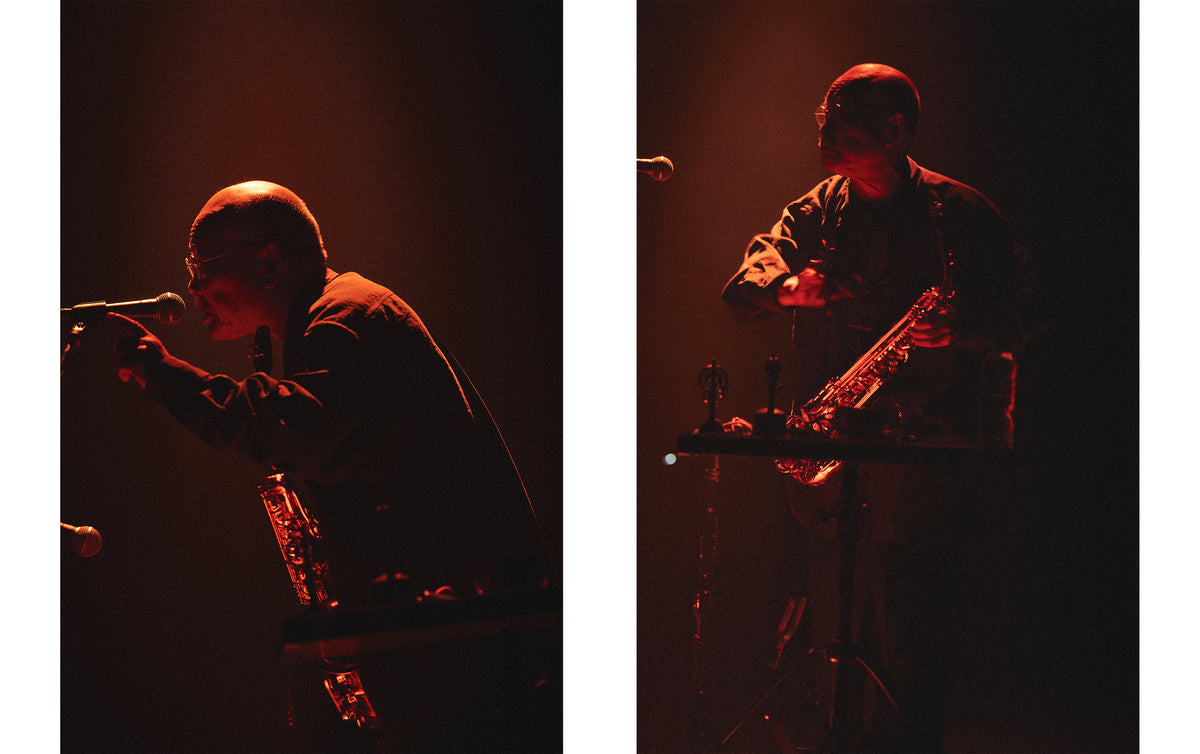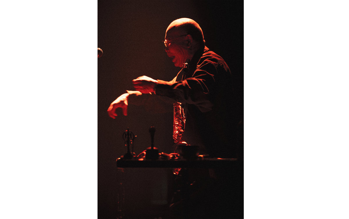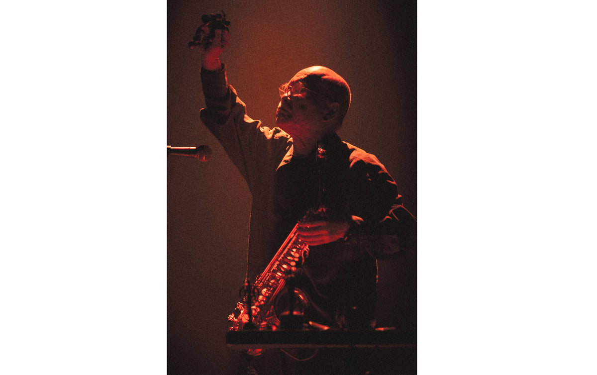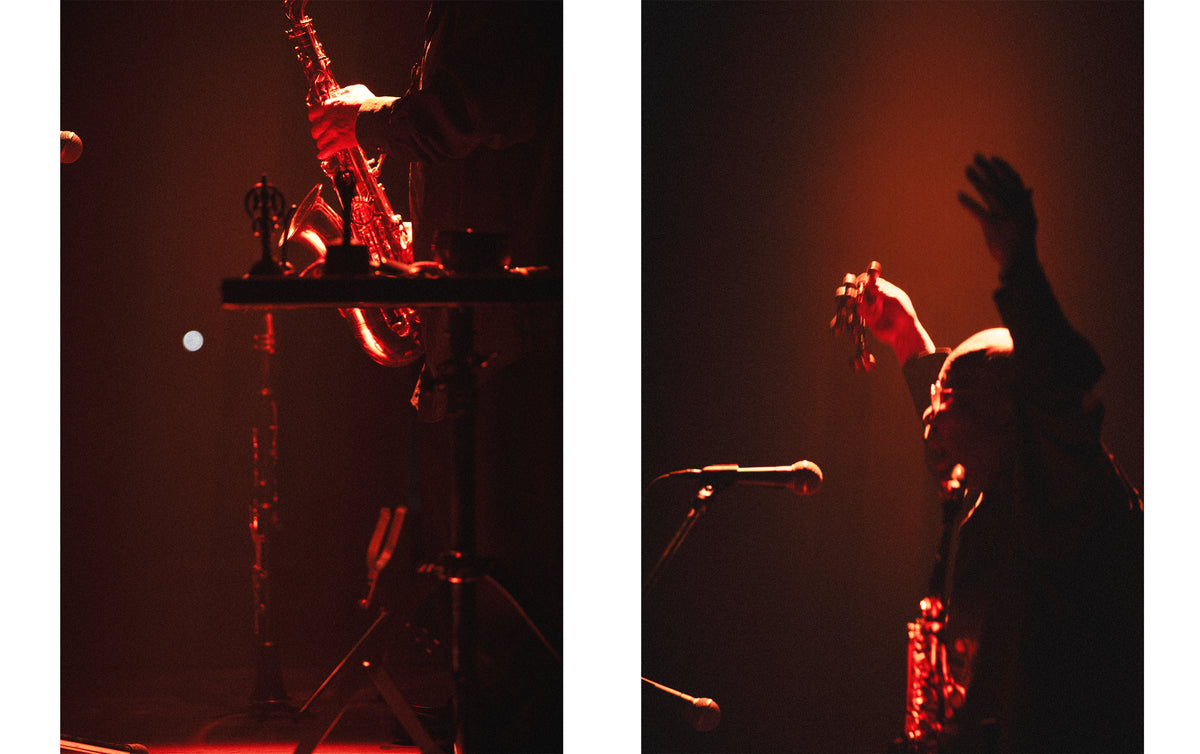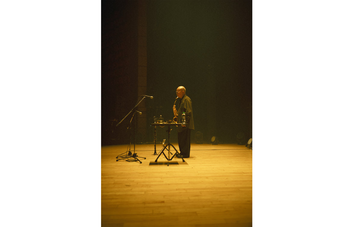 On June 4, for the third day of the series, London-based percussionist Valentina Magaletti, 79-year-old free jazz saxophonist Akira Sakata, who is one of the most prominent figures in music in Japan, and Berlin-based tenor saxophonist Bendik Giske performed at Sogetsu Hall in Akasaka.